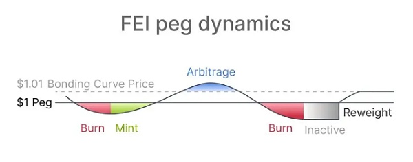 在經歷早期混亂的踩踏期后,參與者們對Fei算法穩定幣的機制已有了一個初步的直觀認識,開發者設定的“直接激勵”機制會抑制參與者在低于0.99美元的價位賣出Fei,同時通過獎勵鼓勵套利者低價買入Fei,以緩慢將Fei拉回至水位線,而在這種機制無法奏效的情況下,Fei協議便會Reweights以動用PCV資金將Uniswap上的Fei穩定幣推回至1美元。