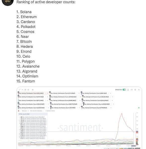 根據Coin98Analytics統計數據,各公鏈活躍開發者排行榜中,NEAR排名第六。