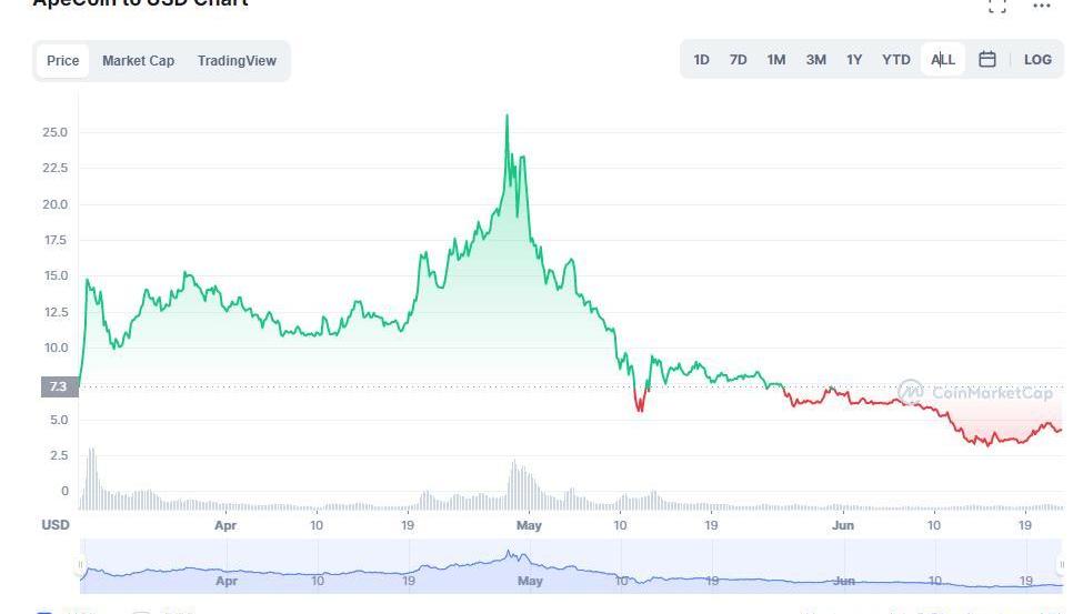 作為NFTHolder也通常能夠有著意想不到的收獲,比如空投等。此前,YUGALABS在鑄造治理代幣APE時,曾將1.5億枚,也就是總量的15%的APE空投給BAYC/MAYC持有者,且初始全部解鎖。如果你持有一枚BAYC猴子,你將獲得10,094個代幣空投,而持有MAYC則能夠獲得2042個APE,按照初始申領價格每個APE代幣7.3USD計算,BAYC持有者將獲利7萬美元以上,而MAYC持有者將獲利1.4萬美元以上。而APE代幣在頂峰價格達到了26.19美元,所以持有一枚BAYC猴子獲得空投收益至多能夠獲利26萬美元以上,而持有一個MAYC,至多能夠獲利5萬美元以上。