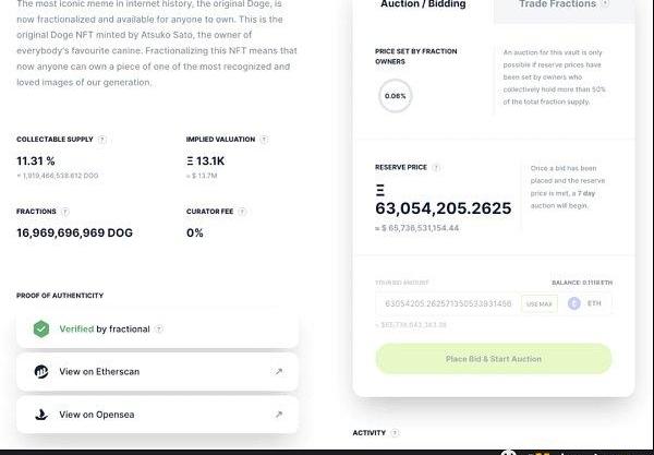 Fractional.art的運作類似于NFTX或NFT20等流動性池,因為用戶存入NFT并獲得一籃子碎片化NFT作為回報。Fractional.art和NFTX/NGT20的相似之處在于,當用戶將NFT存入由NFTX或NFT20創建的保險庫時,NFT存款人將收到代表保險庫/NFT部分/全部所有權的ERC-20代幣。存入NFT的NFT所有者可以設置NFT應分成的分數數量。一旦在Sushiswap或Uniswap等上創建流動資金池,這些碎片化股份就可以在市場上買賣。Fractional.art和NFTX/NFT20之間的區別在于,一旦NFT存入Fractional.art保險庫,NFT在沒有任何收益生成機制的情況下進行拍賣,而在NFTX/NFT20上存放的NFT被鎖定在收益生成池中。