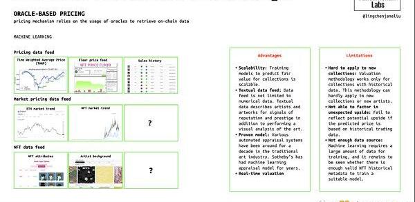 對于基于預言機-機器學習的模型,該模型的好處在于它可以潛在的實現時間序列定價,并可能成為價格預言機的關鍵組成部分,甚至是NFT金融化的基石。然而,困難來自于模型的構建和不同參數的權重。下圖詳細分析了本文中不同估值模型的局限性和優勢。
