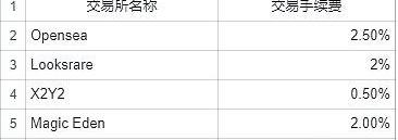 先說交易手續費,Opensea作為具有壟斷地位的龍頭交易所,收取了行業內最高的2.5%的交易手續費,也基本為后來者設定了一個手續費收取的上限,作為后來者的Looksrare和X2Y2都設定了較低的交易手續費以此來爭奪市場,并且市場上還有很多類似于Alienswap這樣的交易所打著0%交易手續費的旗號加入到這場價格戰中來。