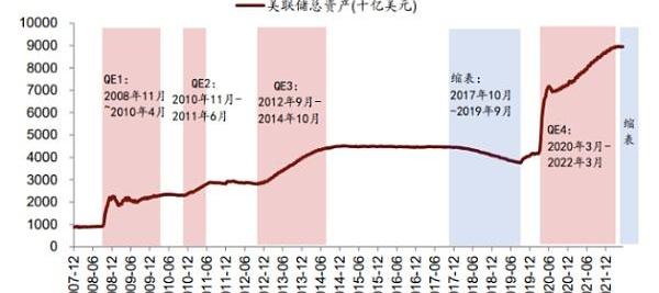 此外,由于本輪擴表速度和規模更大,那么相應地縮表的節奏也更快。上輪美聯儲共開展三輪QE,歷時近6年擴表3.5萬億美元;本輪擴表兩年半增加5.14萬億美元。
