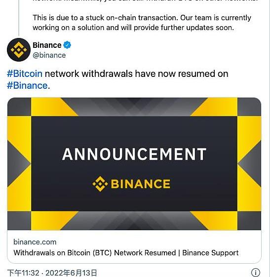 周一下午,由于突然出現比特幣提款時,幣安成為焦點該公司首席執行官趙長鵬在推特上公告,交易暫停導致積壓,該行動采取行動。