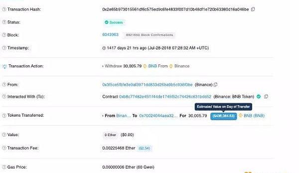 2018年6月29日,謝國梁將10,500ETH轉移到Binance帳號。Binance