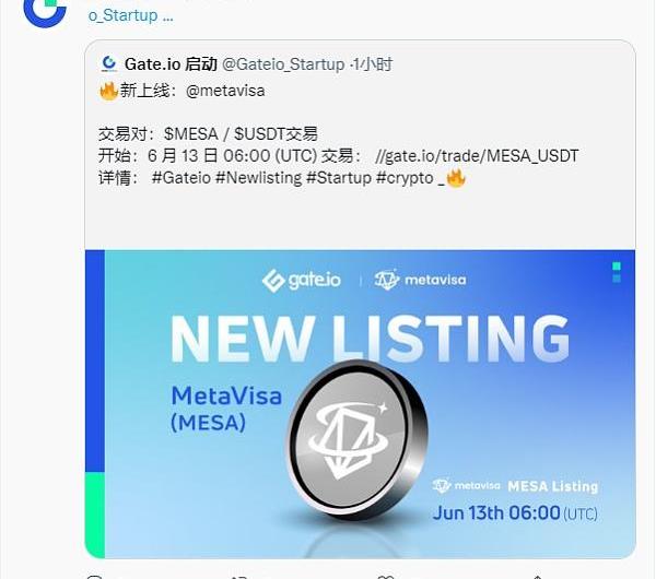 XRP/HKD-0.59%據Gate.io官方推特消息顯示,Gate.io交易所將于2022年6月13日上線MetaVisa項目代幣MESA。