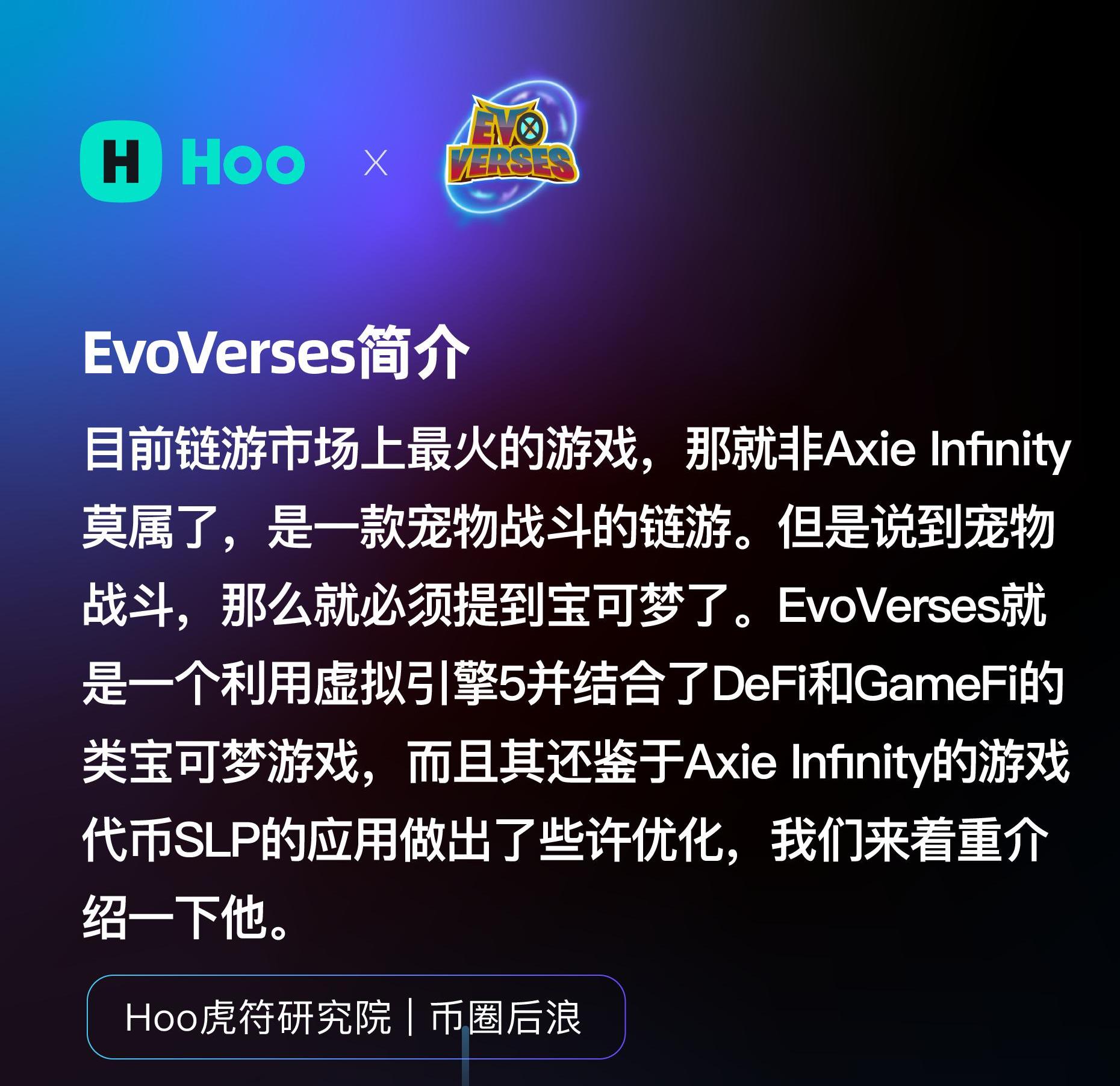 XRP/HKD-0.09%目前鏈游市場上最火的游戲,那就非AxieInfinity莫屬了,是一款寵物戰斗的鏈游。但是說到寵物戰斗,那么就必須提到寶可夢了。EvoVerses就是一個利用虛擬引擎5并結合了DeFi和GameFi的類寶可夢游戲,而且其還鑒于AxieInfinity的游戲代幣SLP的應用做出了些許優化,我們來著重介紹一下他。