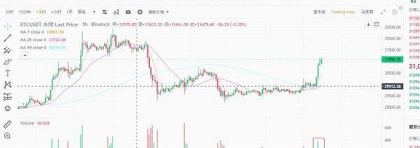 今日BTC操作建議:價格回落30700處介入多單,防守放30000關口,目標看上33000