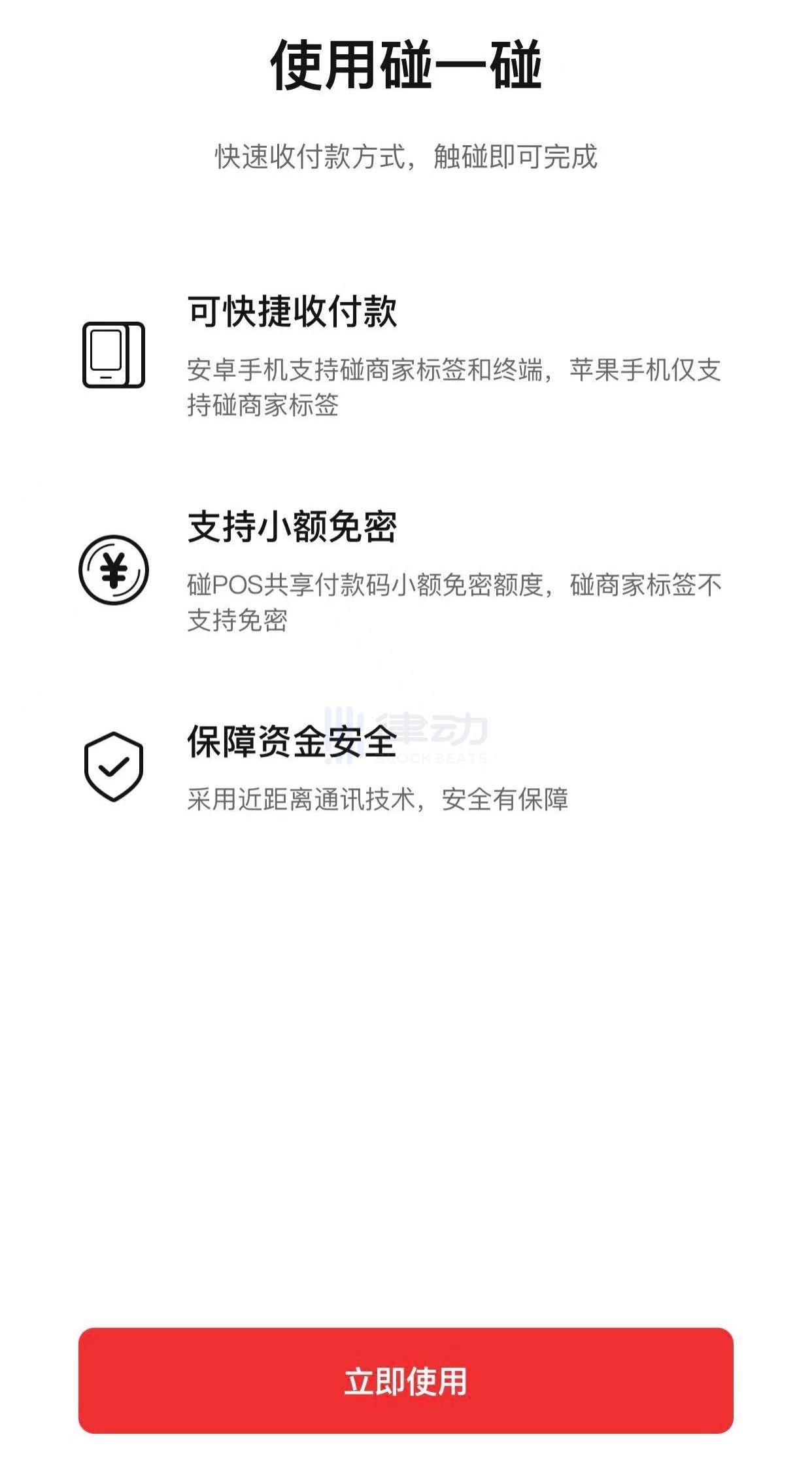 用戶在將手機靠近POS終端NFC區域,或將兩個NFC手機相互觸碰,即可完成付款交易。同時,「碰一碰」支持在線、離線兩種模式,離線模式在聯網、斷網下均可使用,使用時用戶可根據需要做模式切換。