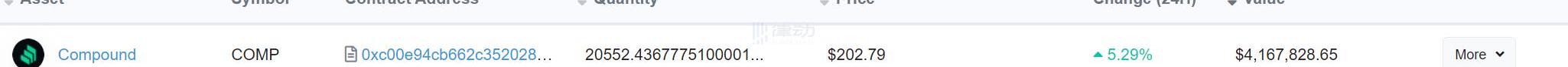 JumpTrading的錢包地址現有約2萬枚Compound持倉,價值約合417萬美元。