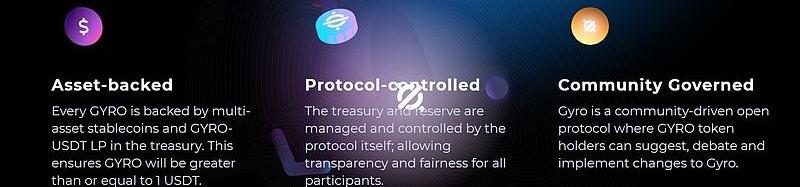 某種程度上我們可將GYRO視為加密生態系統中的樂高積木,因為它跨越了高波動性的比特幣和掛鉤穩定幣交易間的風險狀況,功能穩定幣可以實現美元的穩定性和價值,但這并不一定表示它們的購買力和價值增長能力是穩定的,在Gyro中協議僅根據價格進行鑄造或銷毀。