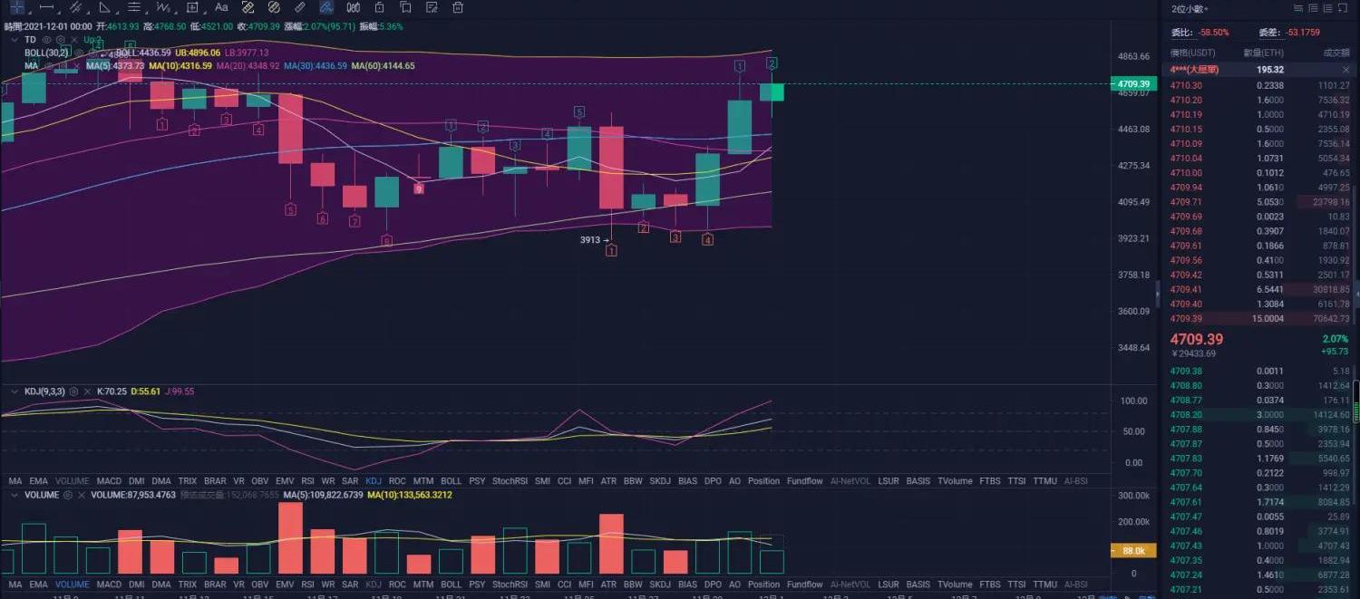 展開新月線的同時回顧上月整體情況振幅26%之余,上下區間近16000點,本月振幅姑且可以定格在2萬點之上也必須要跨階段運作,為明年打下基礎!本周走完一半,保留震蕩趨勢還有待突破大區間震蕩背后是瘋狂掃貨!耐心等待,勿激進朝遠處看