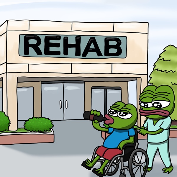 Rehab 是 rehabilitatio 的縮寫,意即(吸或酗酒)康復治療中心,取此名寓意為逃離烏煙瘴氣幣圈文化(手動狗頭 .jpg),可以理解為炒幣黨理療中心,并以此作為敘事線索,出品了「Rekt Pepe」等系列的 Meme NFT。