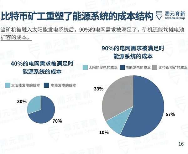 如果不是比特幣挖礦,太陽能(一種間歇性能源)只能提供40%的電網電力,這樣公用事業公司(發電公司)必須收取更高的電價以補償巨額資本投入。但如果將比特幣開采整合到太陽能發電系統中,能源提供商(無論是公用事業還是獨立實體)將有能力在不降低盈利能力的情況下,在電價和比特幣價格之間發揮套利作用,還有可能出售「過剩」的太陽能,滿足幾乎所有的電網電力需求。