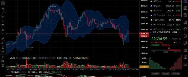 ???比特幣昨日行情,自昨日早間下行觸及28800位置低點后走出反彈,今日凌晨最高觸及33809位置,目前價格再次走出小幅回落,走勢有進一步反彈的可能。