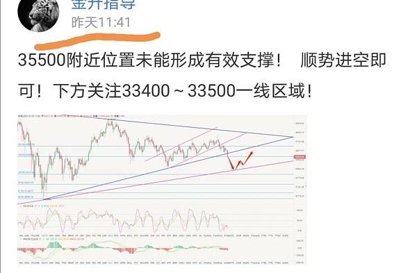 回到今日來看,?早間給出及時提醒!順勢35500附近空單進場!?目標看33500~34000!已走出目標!斬獲高額利潤空間!