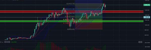 1900/1/1 0:00:00比特幣以太行情分析 ??ETH再次起飛創造歷史新高1438!??以太坊在近日白盤展示的十分強勢,行情在多日表現的抗跌情緒比較明顯,行情基本企穩在1200上方.