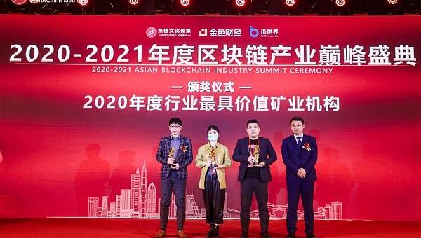 會議迎來第二輪頒獎儀式,由華夏產業經濟研究院副理事長郭石泉現場頒發“2020年度行業最具價值礦業機構”獎項,通過行業協會、資深專家多重評選后,由下面三個優秀礦業服務機構獲得:開源礦池、金色算力云、逆墑科技,該獎項旨在表彰在2020年度最具價值的礦業機構。