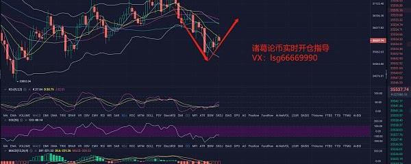 BTC行情分析:BTC大盤今天再次回踩日線級別布林中軌線,這個支撐位置近期多次試探,短期重點關注中軌線35500一帶的得失,現貨操作上沒有效跌破該支撐前暫時持幣觀望。再看四小時級別走勢,目前在一個大三角區間內震蕩,震蕩上沿強壓制在38500一帶,短期壓力在四小時的布林上軌37800一帶。下方支撐在35500一帶,日內繼續維持震蕩思路。小時級別走勢來看原來的上升趨勢線已經跌破,目前正在進行破位后的反彈修復,反彈關注37100原支撐線破位后的阻力作用。壓力位:37800,支撐位:35000。