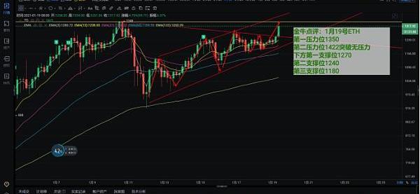 ETH/USDT周線級別收線倒錘星,長長的下影線多方力量還是比較強,今日以1200為中軸線站穩向上沖擊1350,目前ETH反彈力量強于BTC放量突破,上方第一壓力位1350,第二壓力位1422突破無壓力,;下方第一支撐位1270,第二支撐位1240,第三支撐位1180。