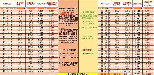 通過這個表格我們可以看出,一臺192T礦機如果是2021.1.5號接入到網絡里面挖礦,前面107天按照全網每天16P的有效算力增速來推算,扣除公司收取的20%的技術維護費總共能到手的有721個FIL幣。