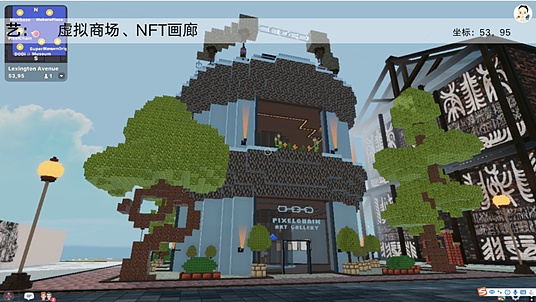 在藝術方面,這有虛擬畫廊和虛擬化身在里面進行參觀。同時這里面有一個象素鏈的藝術畫廊,這里補充說一下,元宇宙有基于簡單象素級別效果的,Decentraland是向下兼容象素模型的搭建,這個畫廊是用象素搭建出來,結合了建模低模定制化的東西制作出來的。