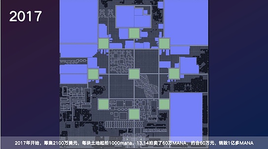 剛才比爾蓋茨這個視頻也我們做區塊鏈或者做元宇宙經常會被質問到的一些話題,用這個視頻來解釋一一切吧。2017年Decentraland平臺面向全球進行了眾籌,總計籌集了2100萬美元,每塊土地是1000 MANA起拍,2017年土地銷毀了1億多的MANA,很遺憾2017年我也有看到Decentraland土地銷售,當時面前這個圖片坐標的點,當時我沒有get到元宇宙的概念和元宇宙的內涵,所以那時候不幸錯過了拍賣的過程。