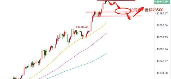 日內短線操作方面在27000-27200去布局空單,目標看向26500一線;