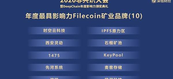 “DeepChain2020年度最具影響力Filecoin礦業品牌”獲獎者:時空云科技、西安靈動、1475、先河系統、濱鏈、IPFS原力區、石榴礦池、KeyPool、麥客存儲、鏈湃科技。