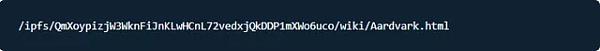 但是,這不是滿足您的土豚需求的唯一選擇!IPFS上存儲著Wikipedia的鏡像,您可以改用它。如果使用IPFS,您的計算機將要求獲取aardvark頁面,如下所示: