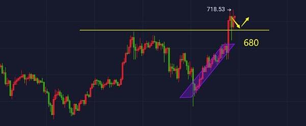 第一:日圖同樣處于連陽上漲過程中,短線波動幾十個點較為正常,大趨勢震蕩偏多運行,從24號開始價格連續上漲市場買盤情緒濃厚,趨勢交易者回踩跟多為主,四小時圖布林帶中軌向上運行,關注斐波那契黃金分割32.8%678附近。