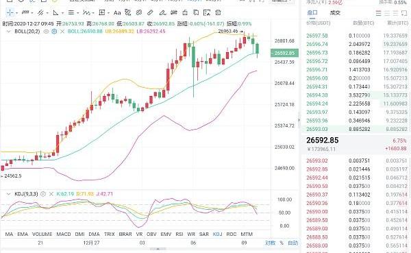 前言:比特幣昨日圣誕下午破24000后,并沒有回調的打算,圣誕大戰多頭占了重頭戲,后市玄彬全部看多,前幾篇文章已經給出了分析,不出意料,今日的幣價一直處于震蕩上升中.