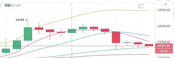 比特幣昨日晚間多頭情緒爆發,打破高位盤整姿態,日內凌晨走勢延續上行,再度刷新歷史新高,行情觸及24200一線回調,目前價格在23400位置附近運行。短周期上看,目前行情進入慢漲快跌階段,雖然價格觸及中軌支撐走出小幅反彈,但是由于當前價格處于高位,短期的回調勢必引起市場的恐慌情緒蔓延,所有大方向雖然還是處于上漲,但是楚初建議各位分層進場抓住實時收益即可,畢竟獲利落袋才是王道。比特幣下方支撐一次關注23240-23000-22750,上方阻力關注23850-24000-24200