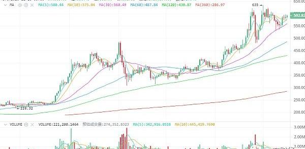 ETH:幣價走勢依舊不錯,下方均線支撐依舊較強,后市依舊看好,操作上繼續持幣為主,第一支撐位590,第二支撐位580,第一壓力位596.45,第二壓力位608,建議590以上繼續持幣,跌破減倉部分回踩580附近企穩接回。