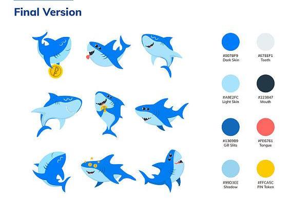 談及?Fin的創作理念,DeFiner的設計主管Jenny如此說道,“Fin以海洋主宰大白鯊為設計原型,在保留大白鯊基礎結構的前提下,把鯊魚擬人并可愛化,來消除人們的恐懼。一是在Fin的表情設計上,采用了微笑或露齒笑的表達方式。讓每一位DeFi用戶在看到Fin時也會被它的笑容所融化。此時的Fin,就是你身邊最溫柔又有力的守護者。二是在色彩選擇上,使用DeFiner公司主色調藍色,并讓顏色更加輕松明亮,使得我們的吉祥物Fin活靈活現,也更貼合當代年輕人的審美。”