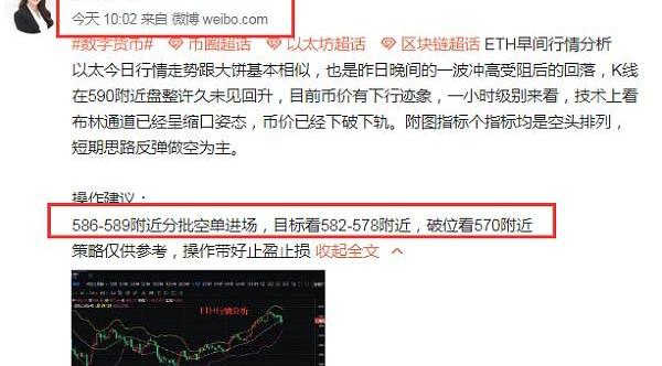 今日本人在早間以太給到的策略是586-589附近空單,目標看582-578,破位看570附近。策略給出后就在午間11.10分就反彈到了最佳入場點591.41附近,截止到目前以太最低來到了575.77附近,要是點位把控好,最佳可獲利15點的利潤,在這里再次恭喜跟上我策略的幣友,有不清楚的可查看附圖或早間文章。