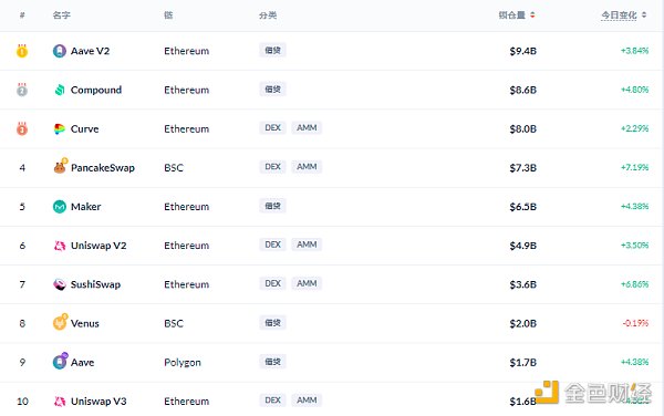 DeFi項目鎖定資產前十排名 數據來源:Debank