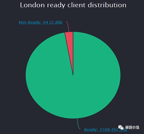 從市場反應來看,以太坊礦工社區似乎并沒有之前想象得那么恐慌。Ethernodes數據顯示,目前已有超過97%的網絡節點已經完成了“倫敦”升級,第一大客戶端Geth節點升級率達到97%,第二大客戶端Openethereum和第三大客戶端Erigon均已100%完成升級——也就是說,礦工社區并不排斥以太坊改革。