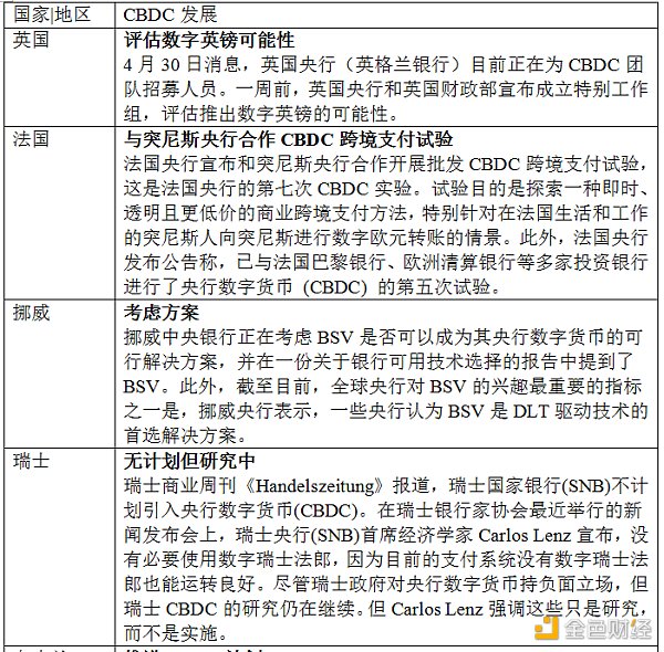 隨著中國CBDC—數字人民幣的不斷發展,世界主要國家和地區也不斷開始相關的研究及試點工作。在研發進展方面,歐洲央行、日本銀行、英格蘭銀行、加拿大銀行等中央銀行已經開展了試驗或試點工作,美聯儲等正在論證CBDC的可行性。