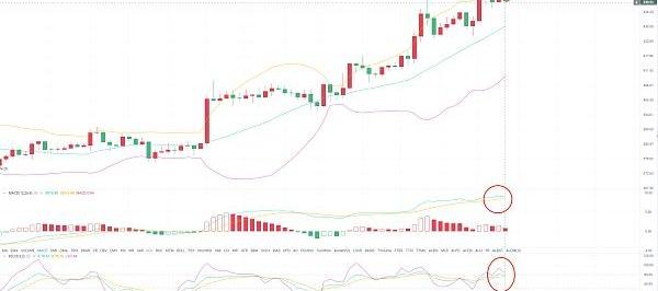 小時圖分析,以太今天白盤是震蕩向上,重心不斷上移。晚間6點最高來到446附近遇壓力后小幅回落。目前K線反回443附近運行。技術上布林帶向上開口加大,K線沿著上軌線慢慢向上運行。各均線托著K線繼續向上發散。幅圖KDJ三線向上開口。MACD快慢線在0軸線上方運行,多頭量能柱慢慢縮短。VOLUME成交量減少。綜合各個技術指標看,短期回踩順勢看多。