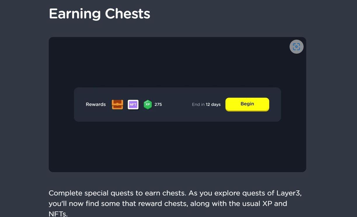 近期Layer3最亮眼的功能莫過于Chest,中文釋義為寶箱,以游戲的形式讓用戶置身其中。