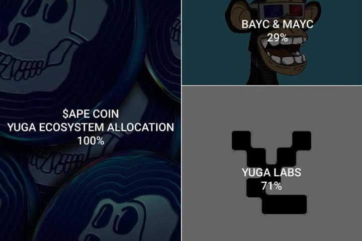 初始代幣分配的設計是將47%的代幣分配給生態系統,15%分配給YugaLabs,1%分配給慈善事業,8%分配給創始人,14%分配給風險投資,15%分配給BAYC和MAYC持有人。