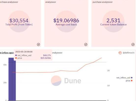 在撰寫本文時,NFTX代幣的價格上漲至33美元,與該錢包以19美元購買的價格相差不遠,但他沒有繼續加倉,僅購買了1次并一直持有。