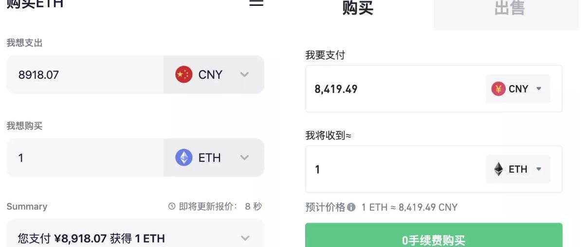 但通過?PANews?體驗產品發現,在?MoonPay?購買?1?枚?ETH?需要?8918?元,而同時同刻幣安法幣通道的?ETH?價格為?8419?元。也就是說,MoonPay?比幣安的?ETH?法幣價格高出?500?元,價差高達?5.6%?。