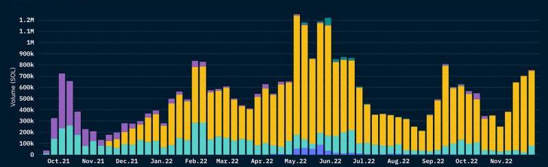 該區塊鏈最近的黑客馬拉松有750個項目提交,而SOL計價的NFT交易量月增長了102%。