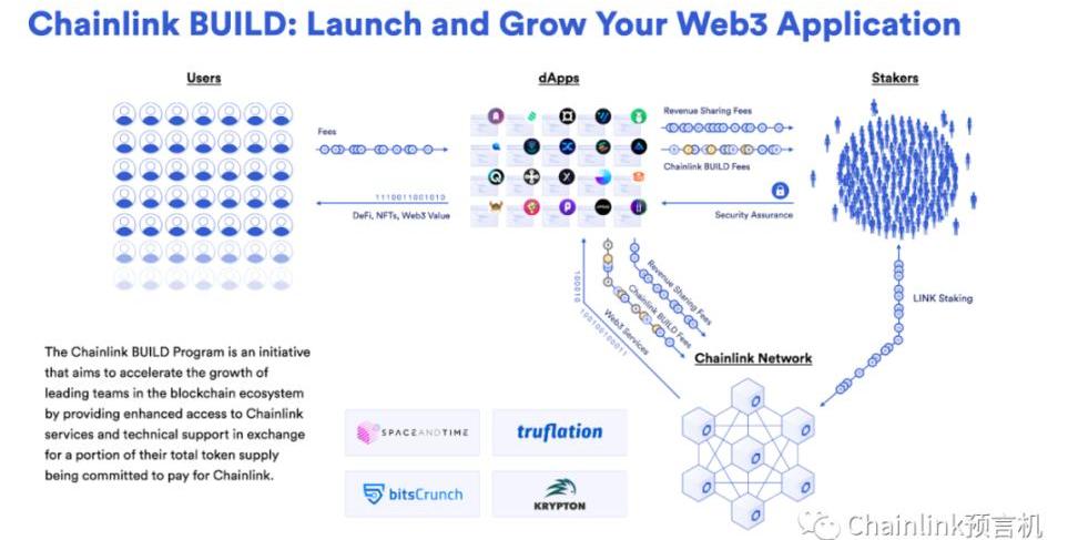 ChainlinkBUILD計劃是ChainlinkLabs發布的一項計劃,旨在加速Chainlink生態中早期和成熟期項目的發展,為它們提供更多Chainlink服務以及技術支持。而項目方則需要承諾向權益質押者等Chainlink服務提供方支付網絡費用以及其他激勵。
