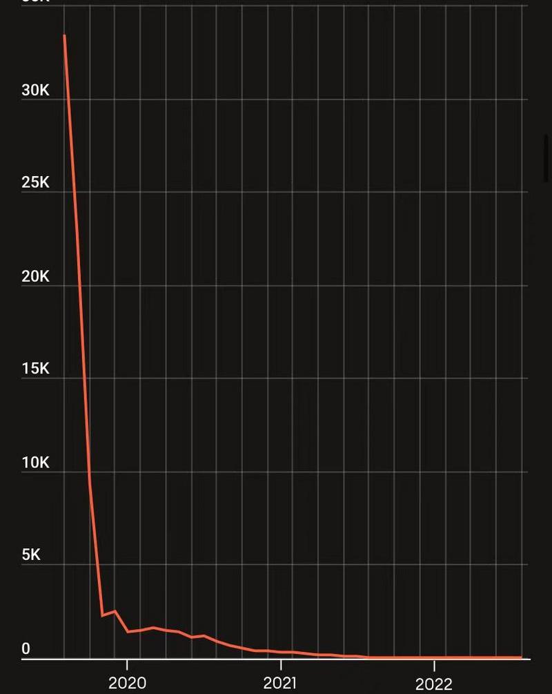 這意味著,在Helium每熱點獎勵最高的時候,業內人士聲稱大部分代幣都流向了Helium的社區,而只有30%多一點。根據區塊鏈的數據,2019年8月,每個熱點的平均收入為3.3萬HNT。如今,每個熱點每個月只能賺2?HNT左右。一些內部人士利用該公司已知的漏洞進一步增加了攻擊量。