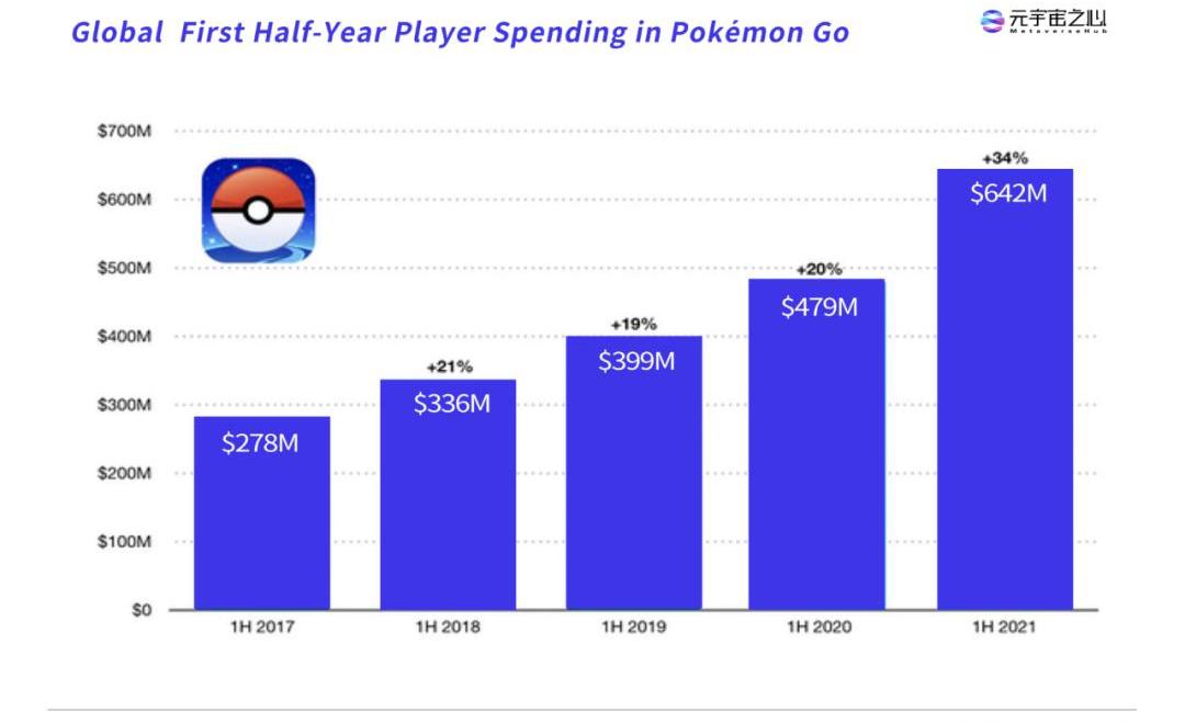也就是說,哪怕到現在《寶可夢GO》依然是世界上最賺錢的手機游戲之一,畢竟在2021年,它也創造了13億美元營收,排在全球版手游營收榜第七。