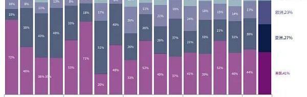 位于美國的獨角獸企業數量遙遙領先,其次是亞洲地區。