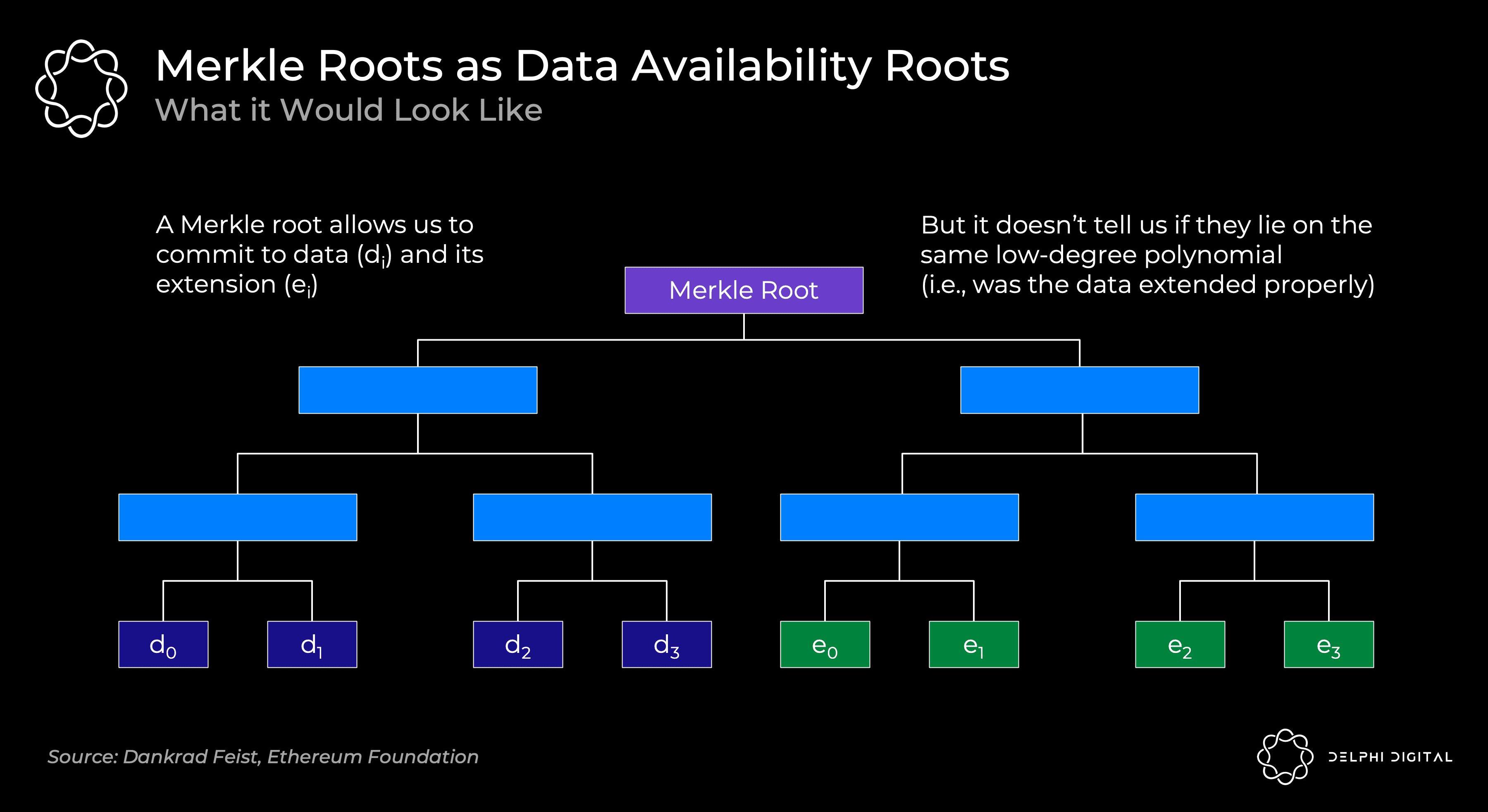 但是,我們還需要知道所有原始數據和擴展數據都位于同一個低次多項式上。Merkle根并不能證明這一點。所以如果你使用這個方案,你還需要欺詐證明,以防萬一做錯了。